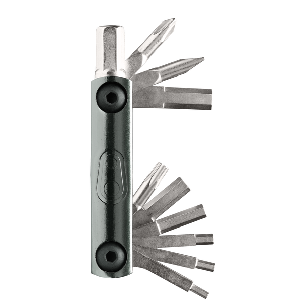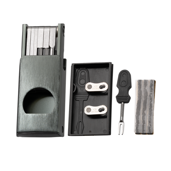 Elevate your repair game with the new F11 multi-tool! Perfect for riders with tubeless tires, the F11 makes it easy to plug a punctured tire and even store extra plugs and a chain link. The magnetic case doubles as a handle, providing the convenience of a full-size set of tools at all times.